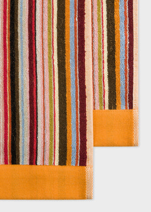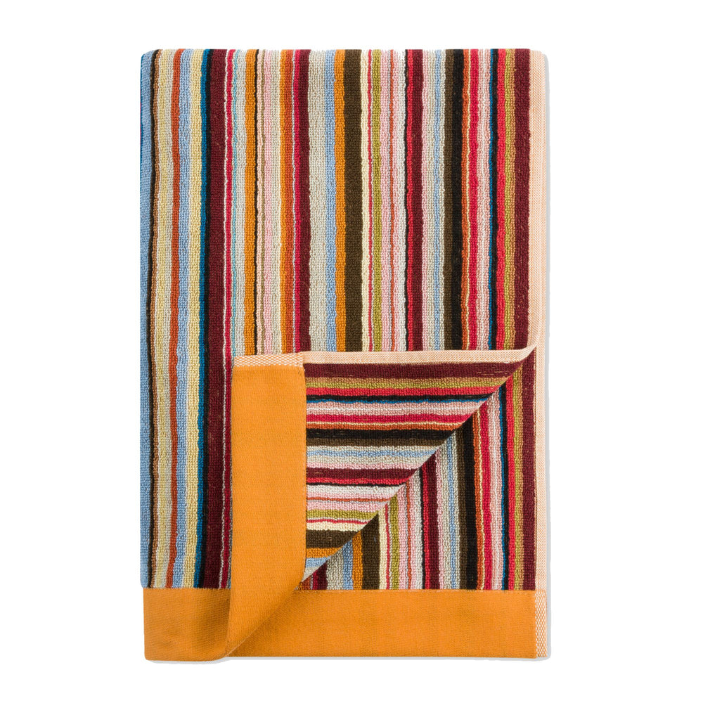 Large 'Signature Stripe' beach towel made from soft and absorbent 100% cotton towelling. Orange edges Black Paul Smith signature label